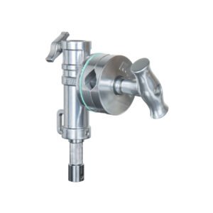 The Kupo 4-1/2″ grip head, also known as a lollipop, features an all-aluminum construction and attaches to a junior 1-1/8″ (28mm) stud. It has two V-shaped jaws that fit tubes of 3/8″ (10mm), 1/2″ (13mm), 5/8″ (16mm), and 1″ (25.4mm) in diameter, providing a solid lock for a gobo arm, large flag, or butterfly. The jaws feature a teeth design, with a composite friction disc in between, ensuring a secure grip. Designed with a junior receiver above the mounting pin, it helps balance weight, making it ideal for butterfly frames and overhead setups. Perfect for converting a junior stand with a combo head into an overhead stand for film and lighting setups.